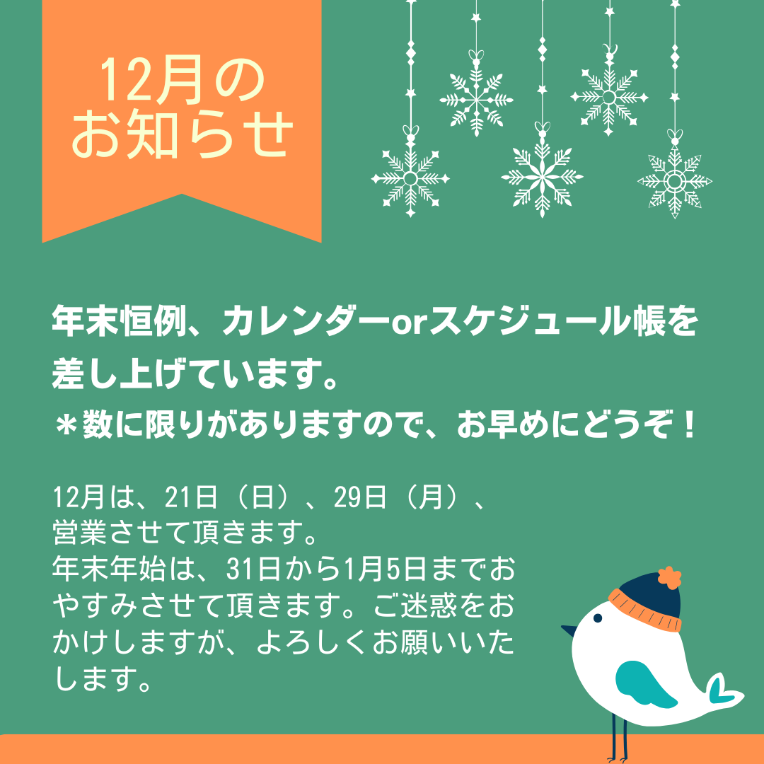 2026年1月は、第3日月がお休みになります。宜しくお願いします。